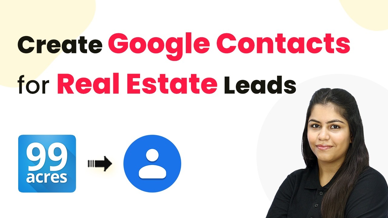Watch Step By Step Video Tutorial Below 1. Access Pabbly Connect for Integration To start using Pabbly Connect, you need to access the platform. If you're a new user, visit pabbl.com/connect and sign up for free. This allows you to explore the features of Pabbly Connect with up to 100 free tasks per month. Once signed up, navigate to the workflow builder. Here, you can create automations that link various applications. This guide focuses on integrating 99 Acres with Google Contacts using Pabbly Connect. 2. Setting Up the Trigger with 99 Acres The first step in our automation is to...