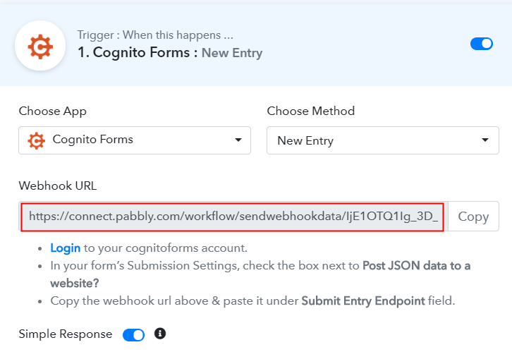 Step 5: Connecting Cognito Forms to Pabbly Connect