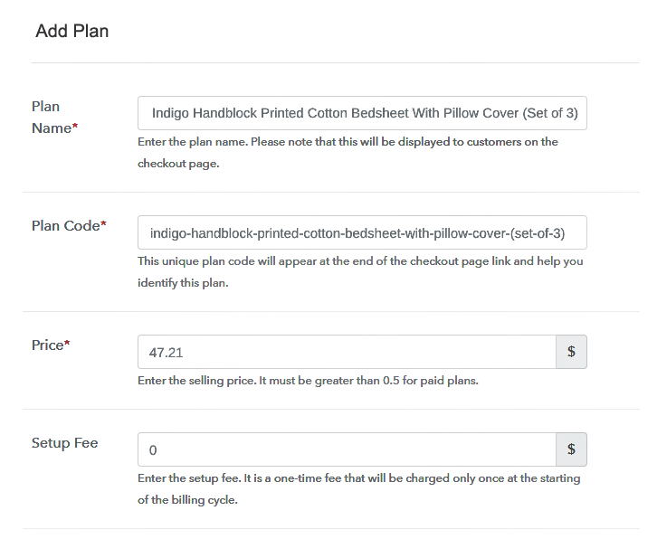 You can create more plans for all the bed sheets likewise.Step 7: Share Your Checkout Page