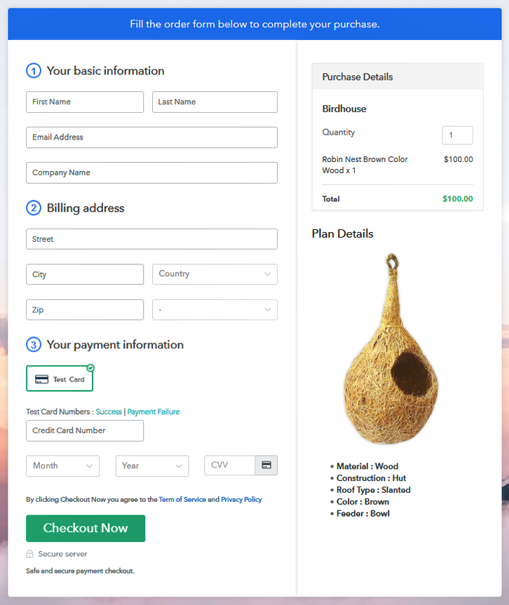 Final View of Checkout Page For Your Birdhouses Selling Business
