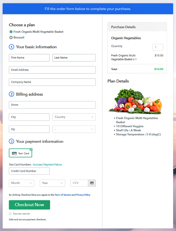 This service will make use of checkout pages where you can display a product to sell organic vegetables online and share it on different social media platforms like Facebook, WhatsApp, Twitter, SMS, Emails etc.