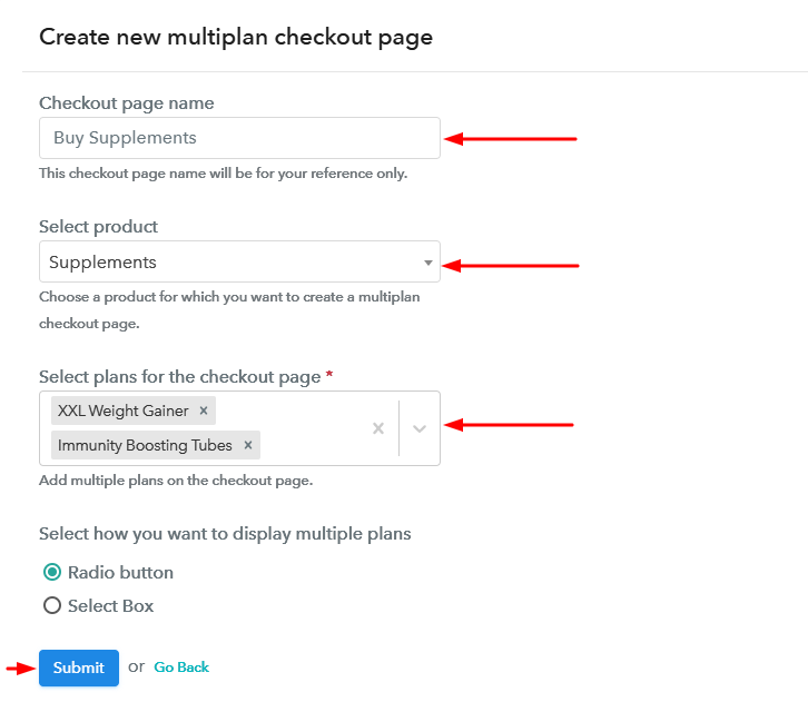 Note: In case you want to sell multiple products via a single checkout page, you create a multi-plan checkout page otherwise skip this step.