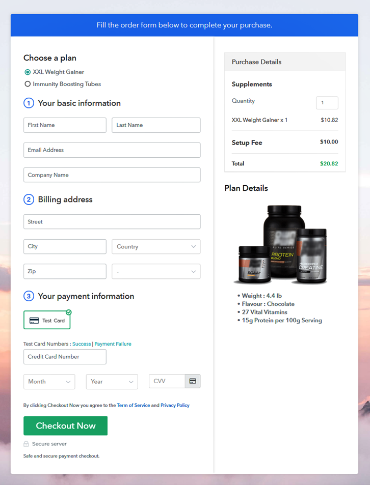 Now, next is adding supplements to sell as plans. Click on the “Add New Plan” button and fill out the details about the supplement that you want to show on the checkout page.